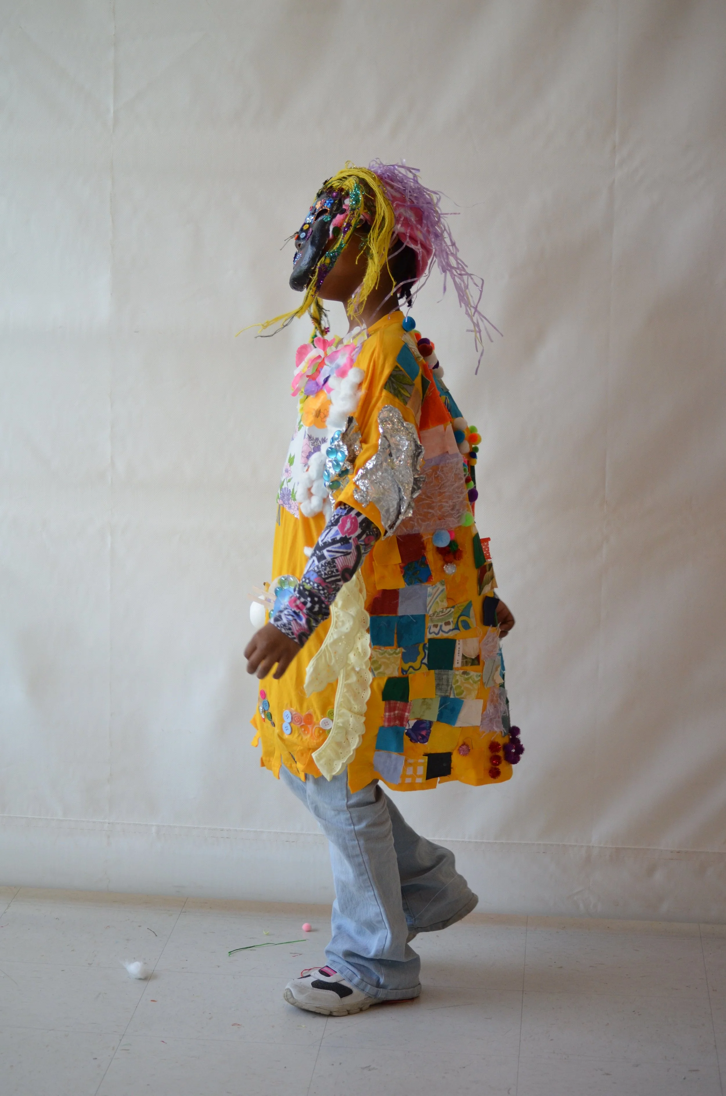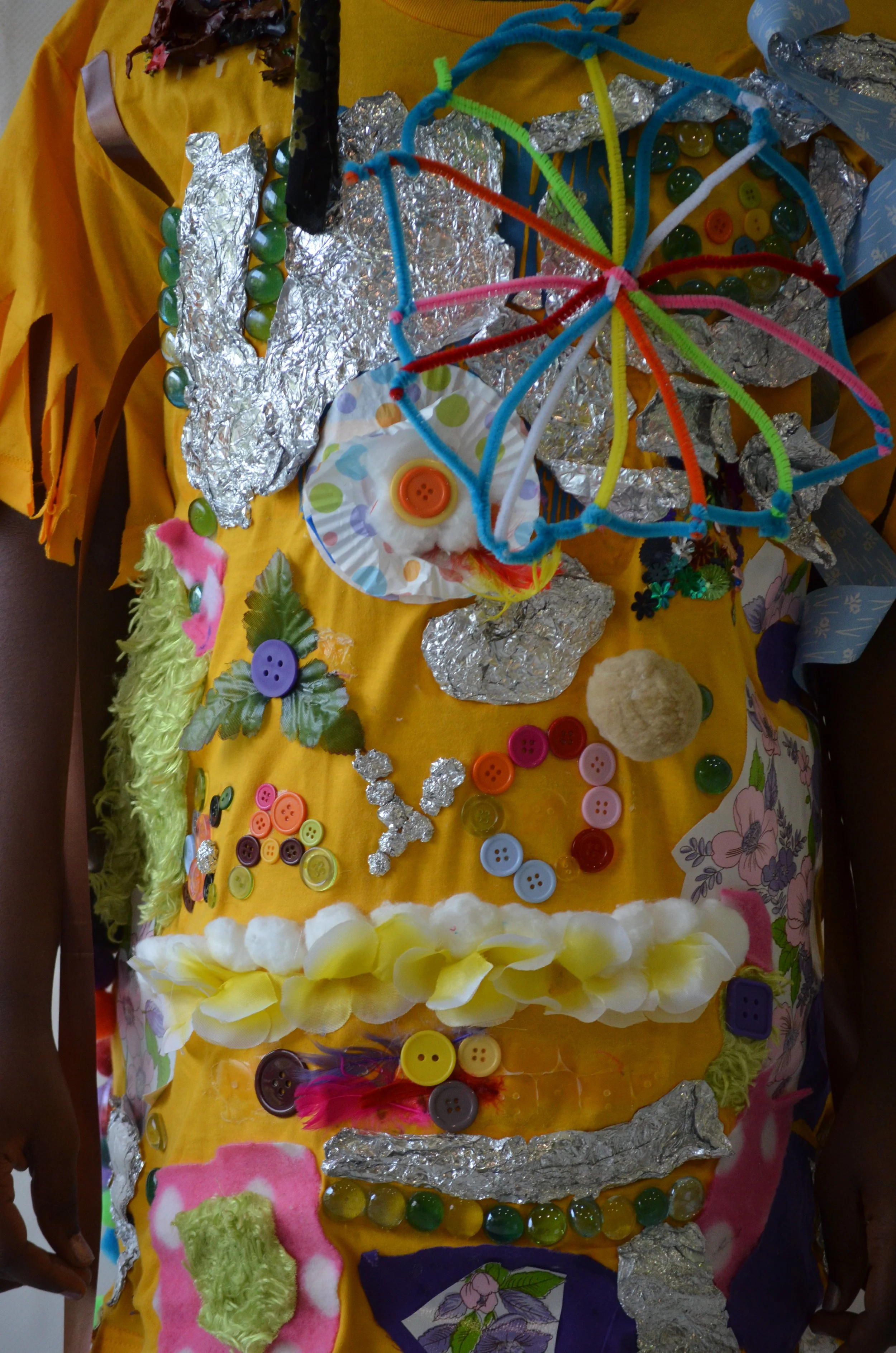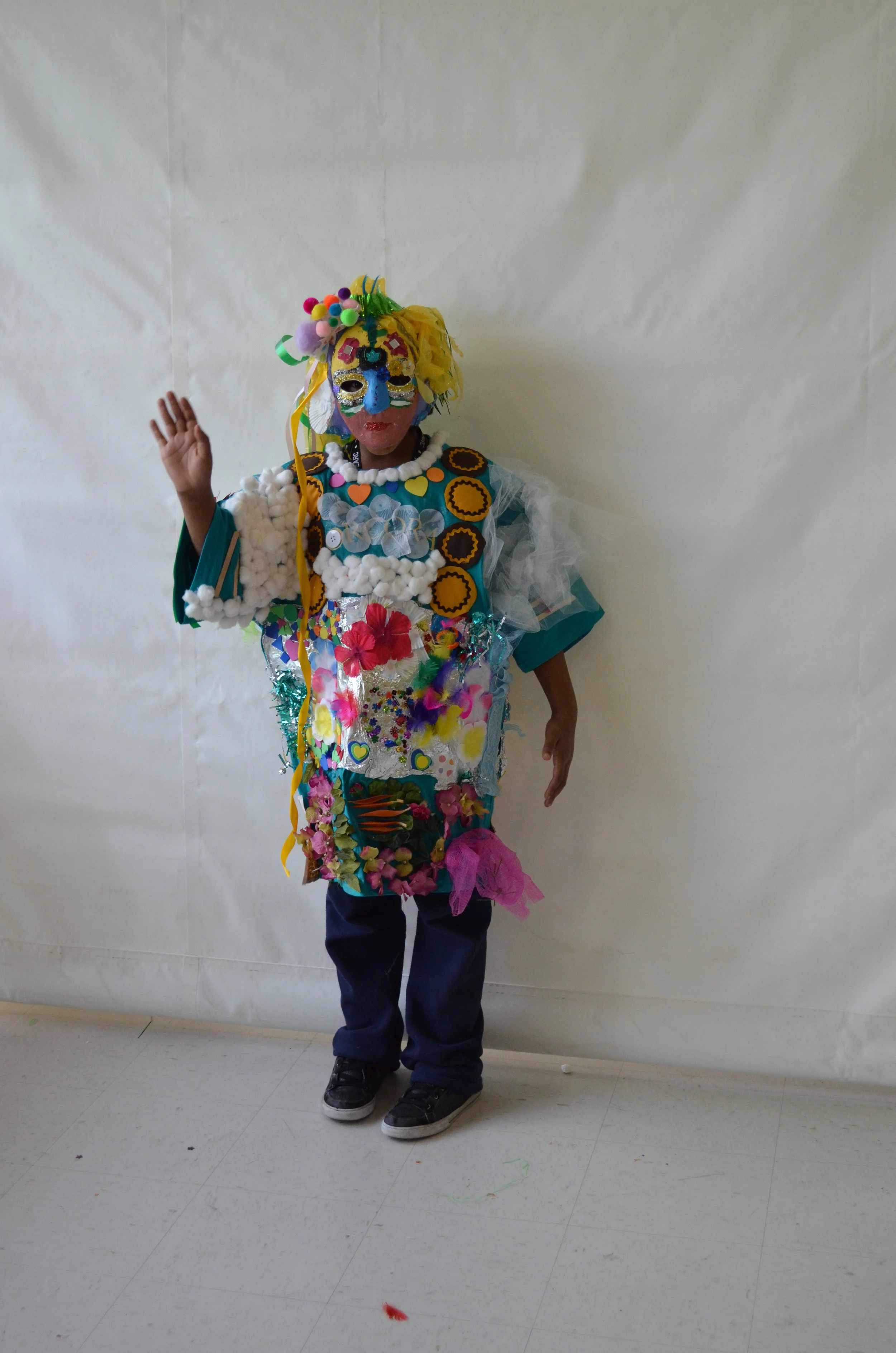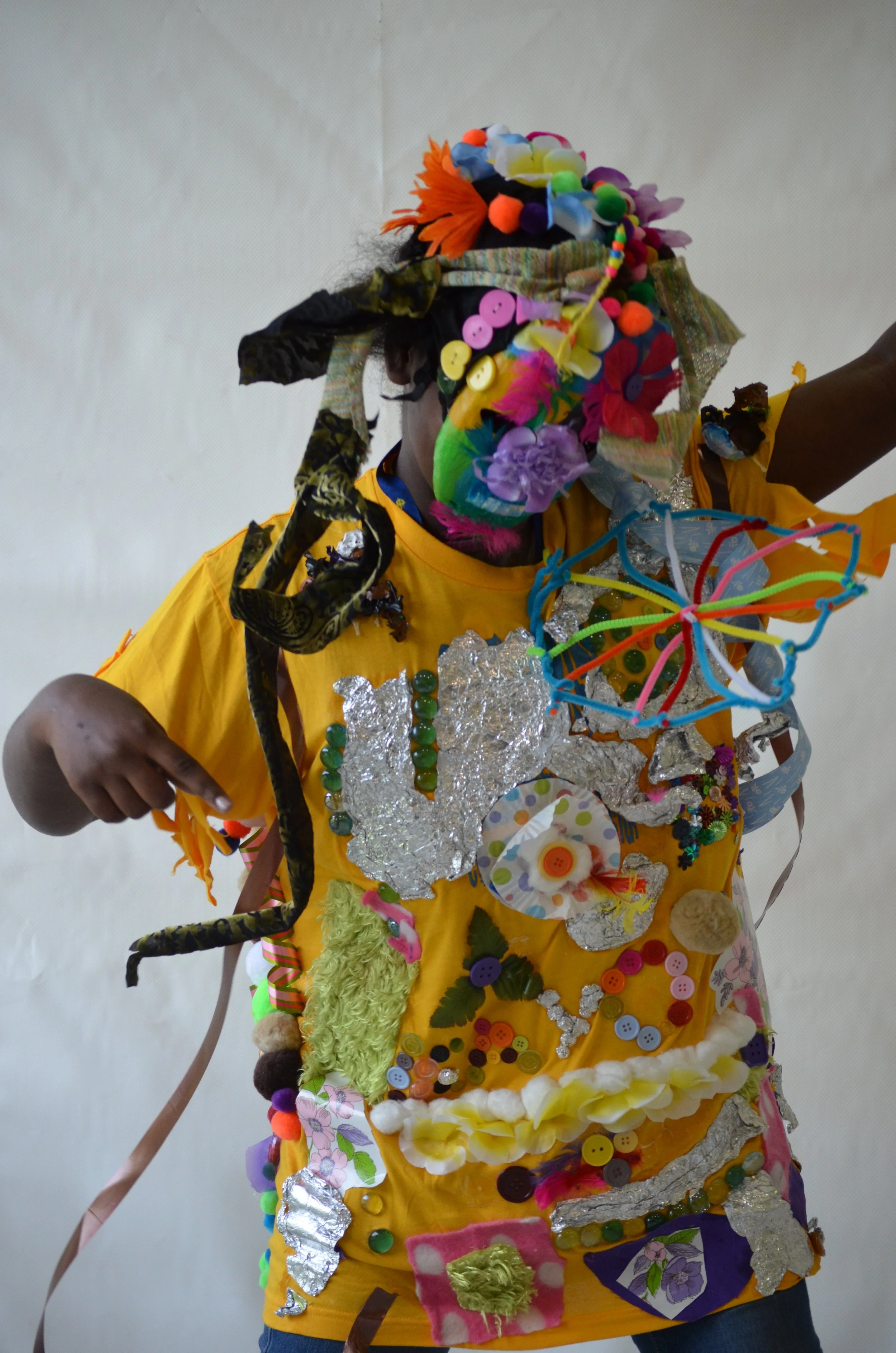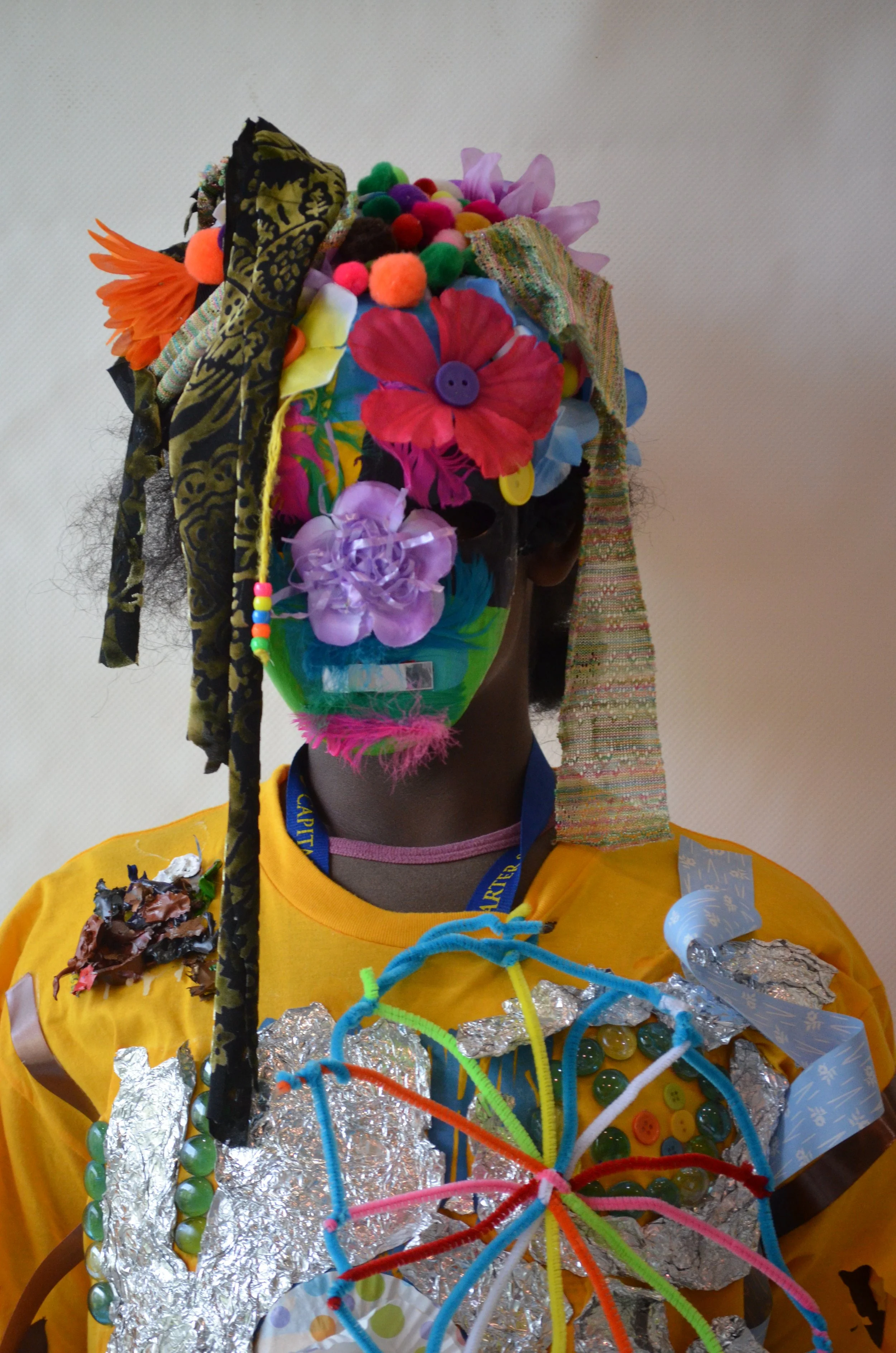 These suits are inspired by the work of Nick Cave that was exhibited in the 30 Americans exhibit at the Corcoran Museum in 2012. Students wore the suits in the programs 20th anniversary celebration and exhibit, Expressions 2012 : Art by DC Youth.