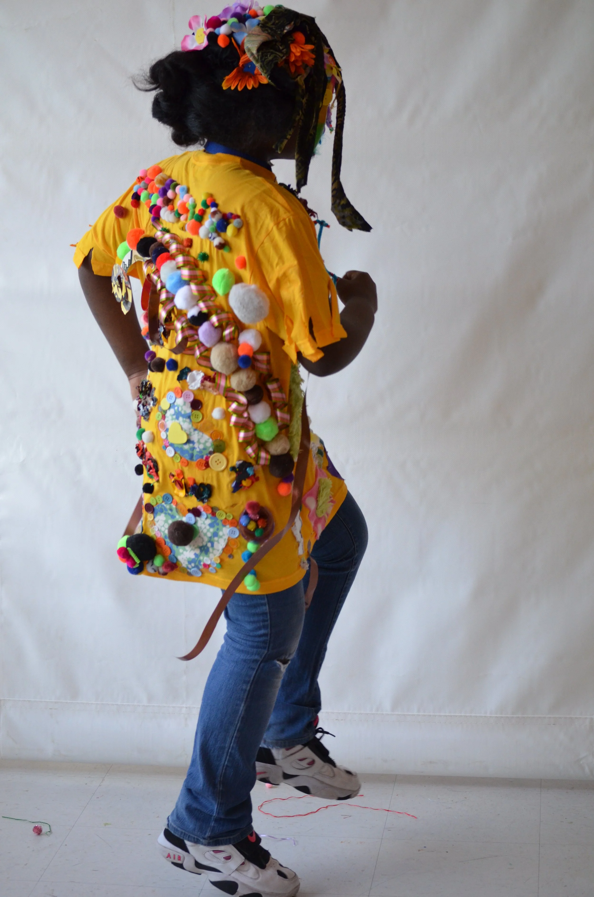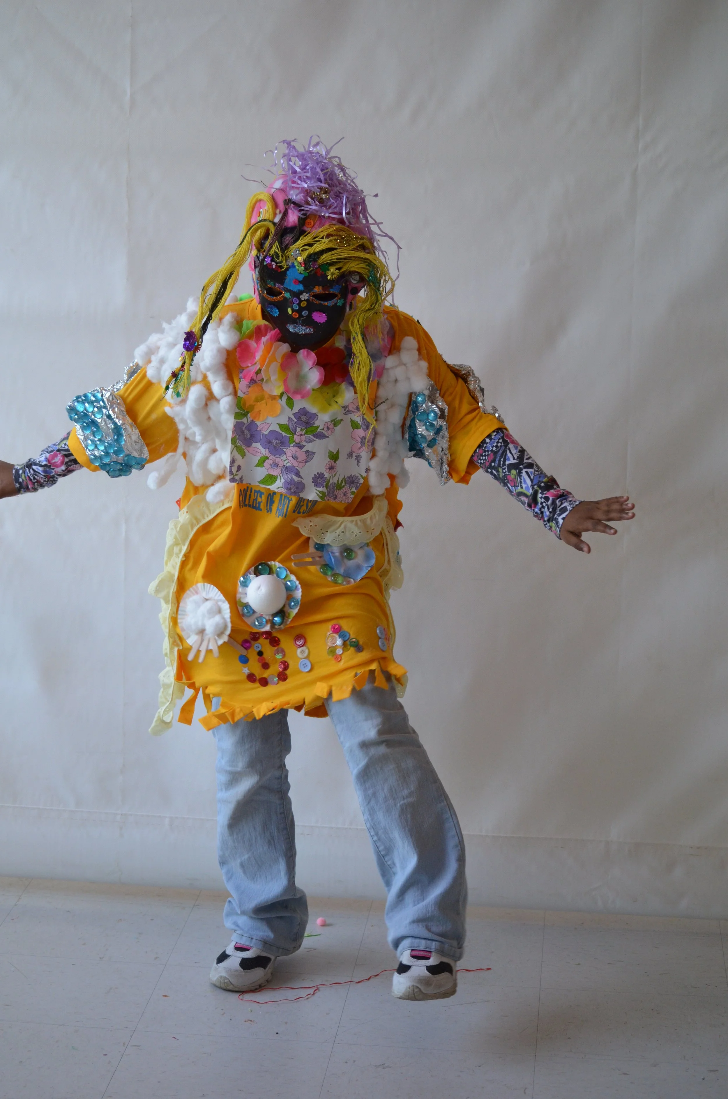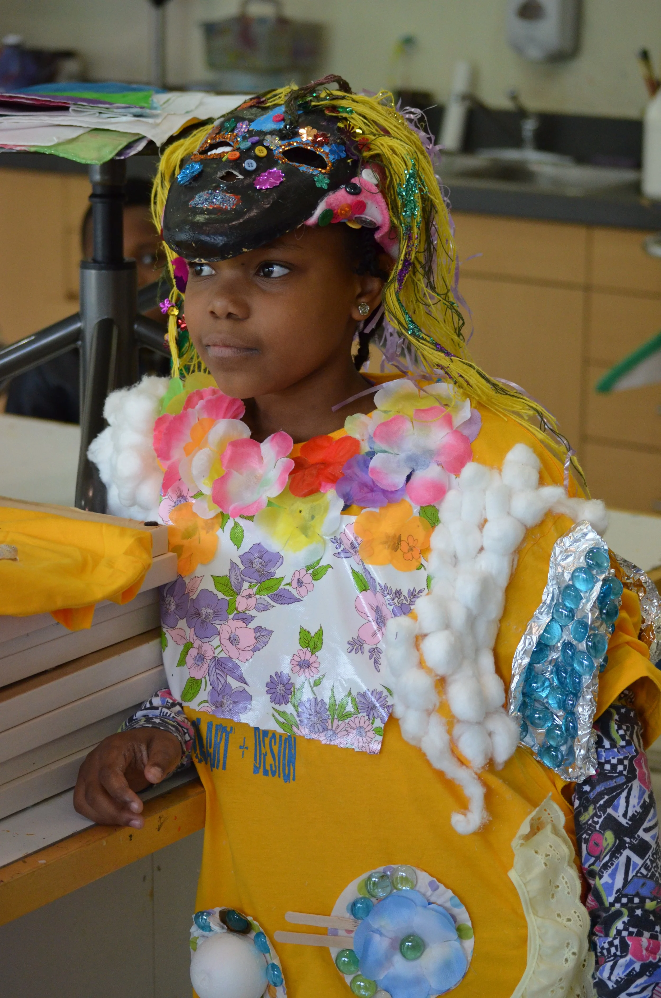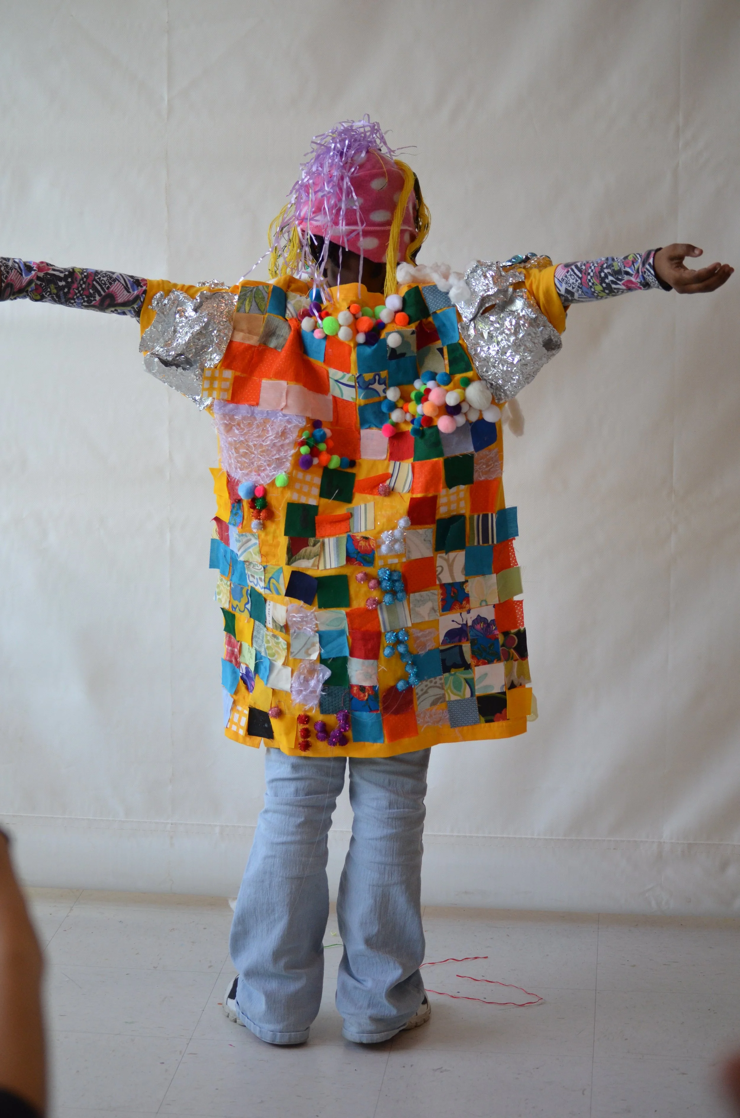 These suits are inspired by the work of Nick Cave that was exhibited in the 30 Americans exhibit at the Corcoran Museum in 2012. Students wore the suits in the programs 20th anniversary celebration and exhibit, Expressions 2012 : Art by DC Youth.