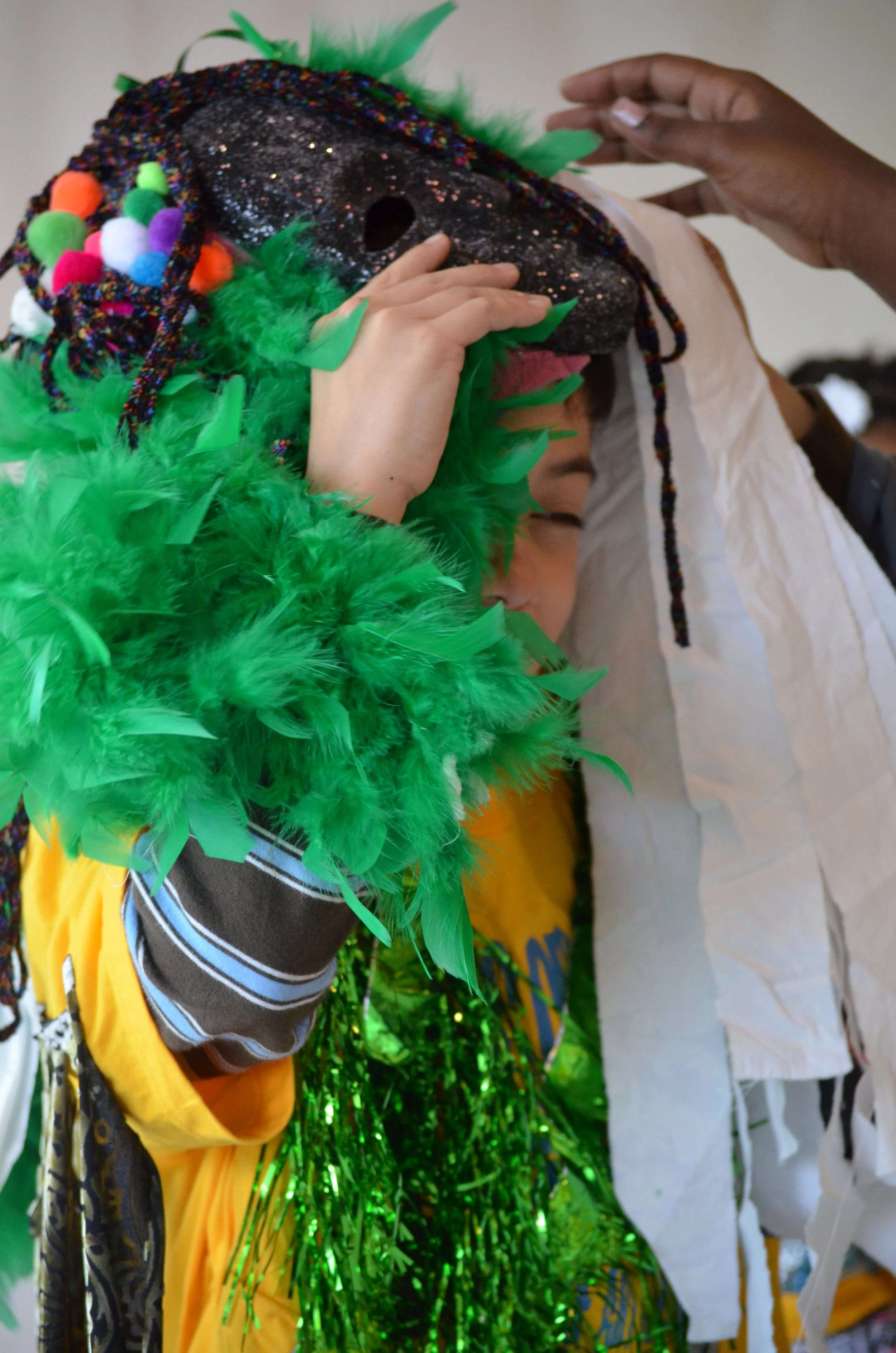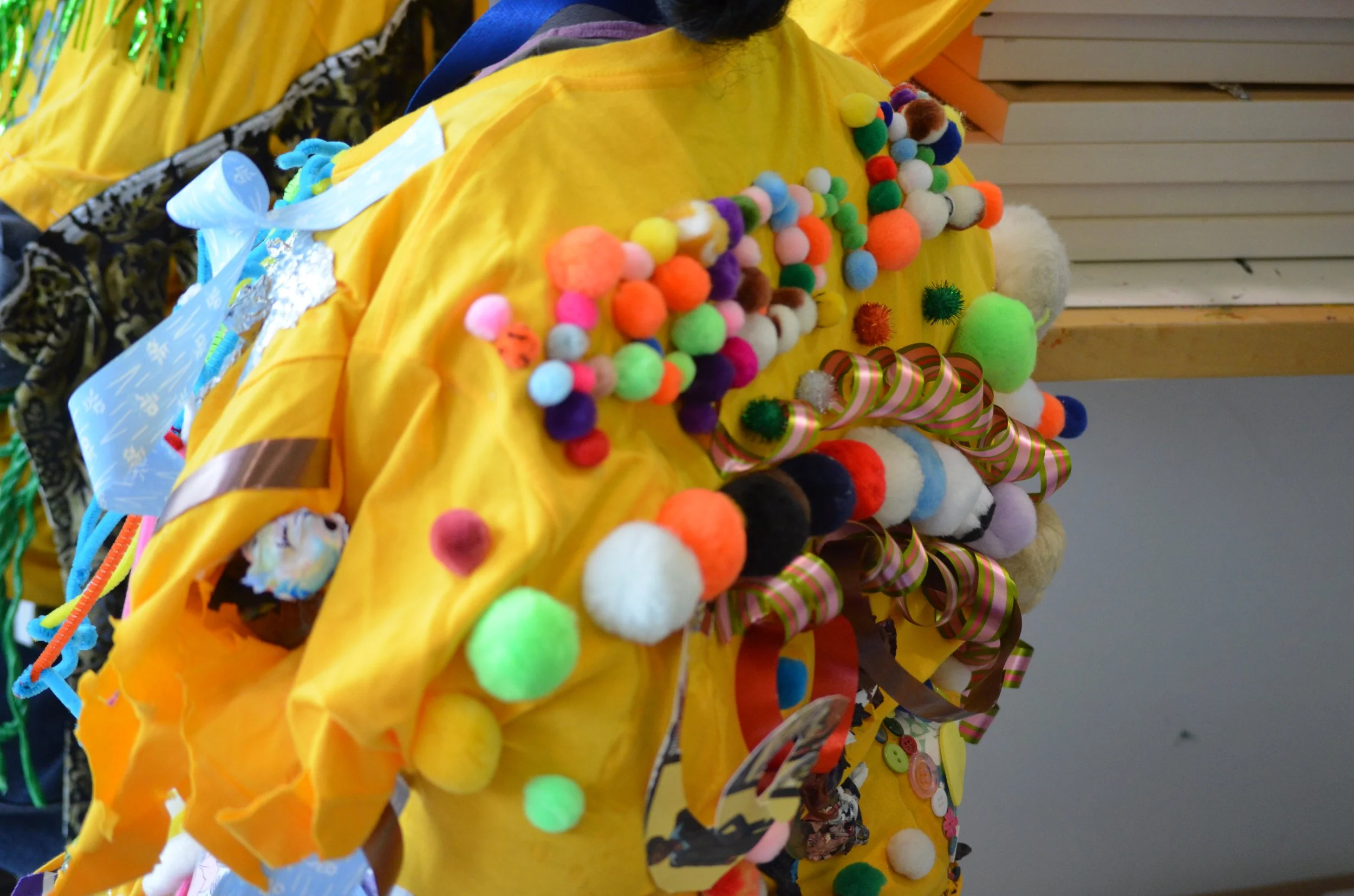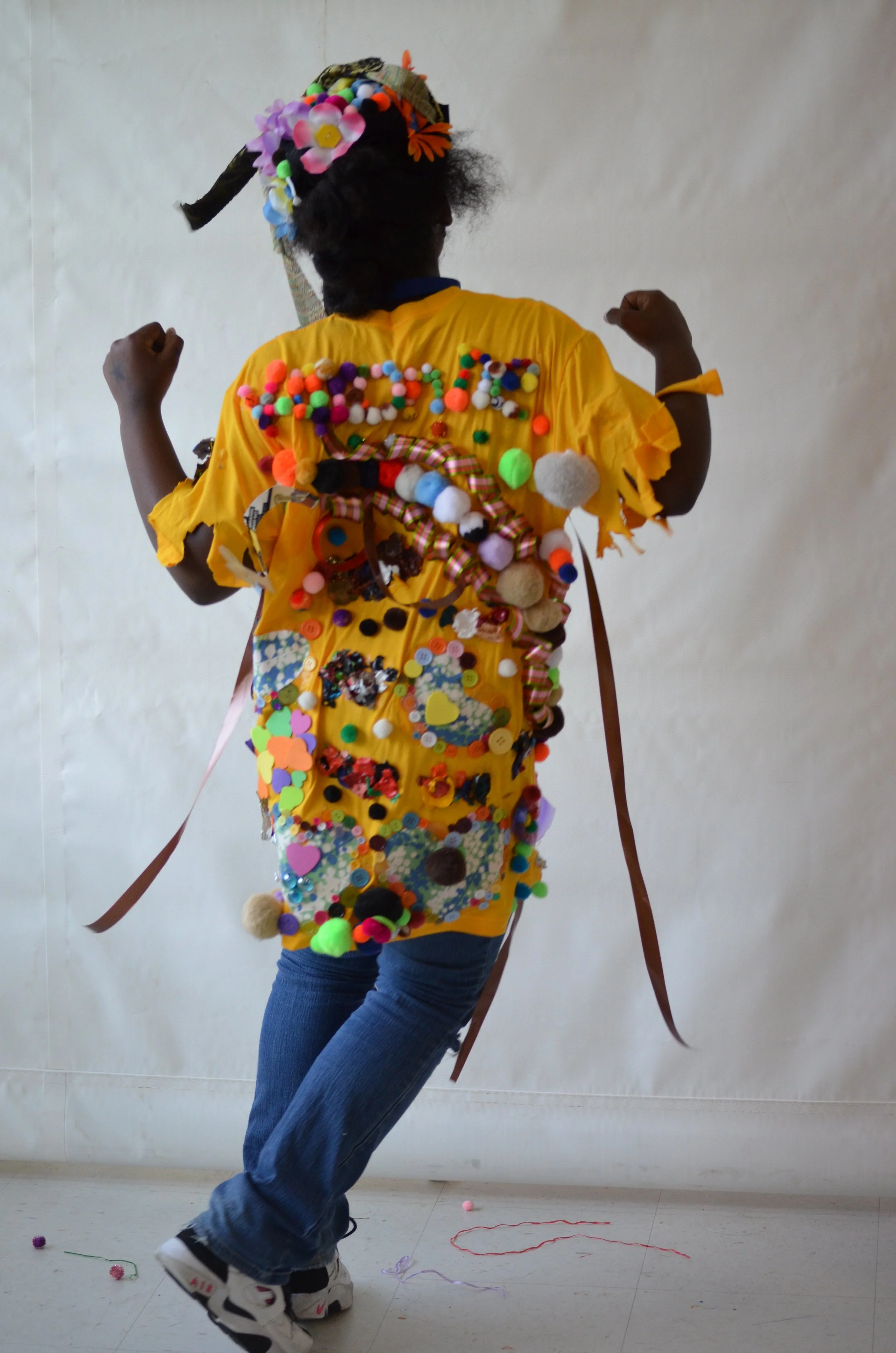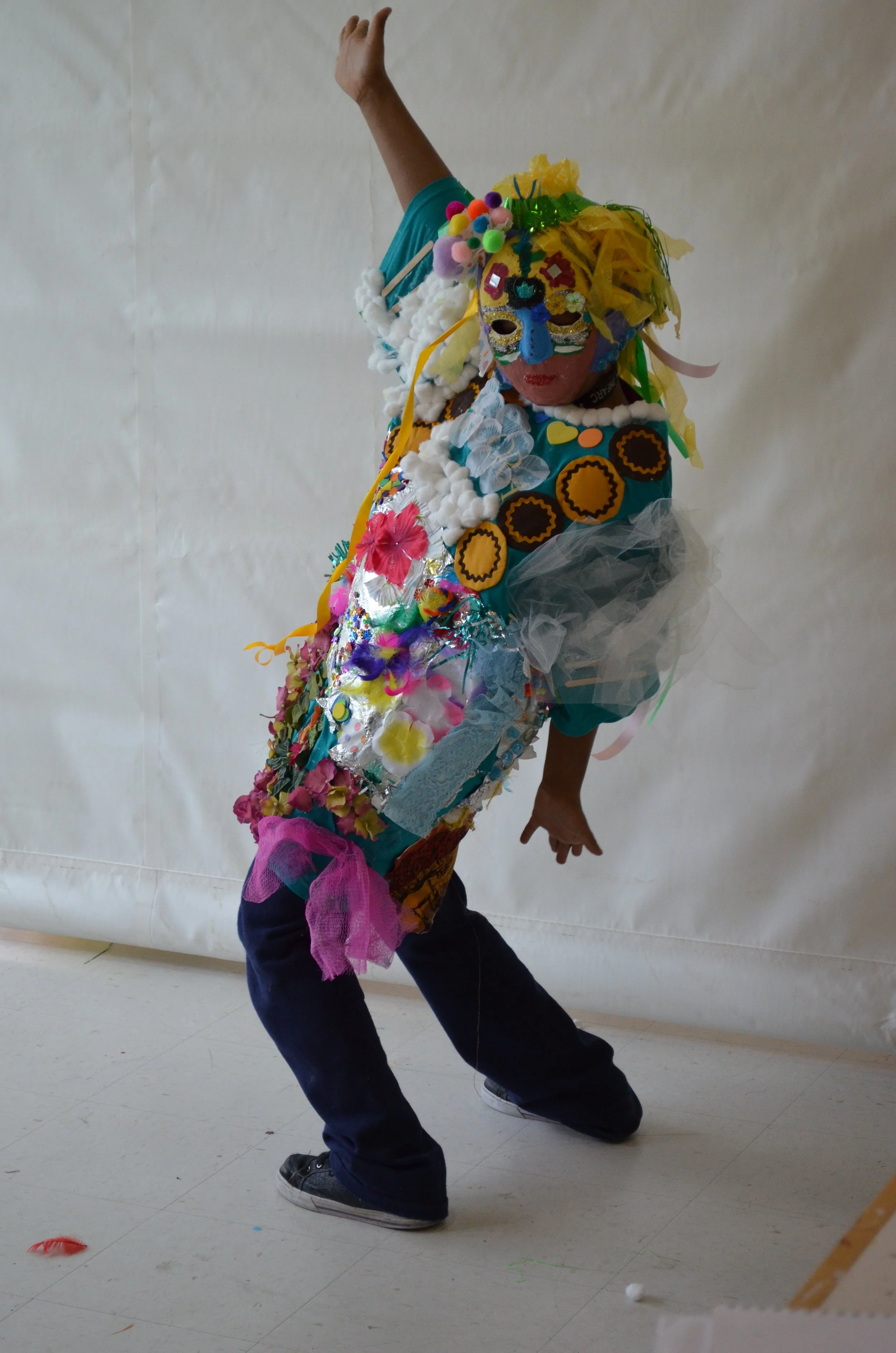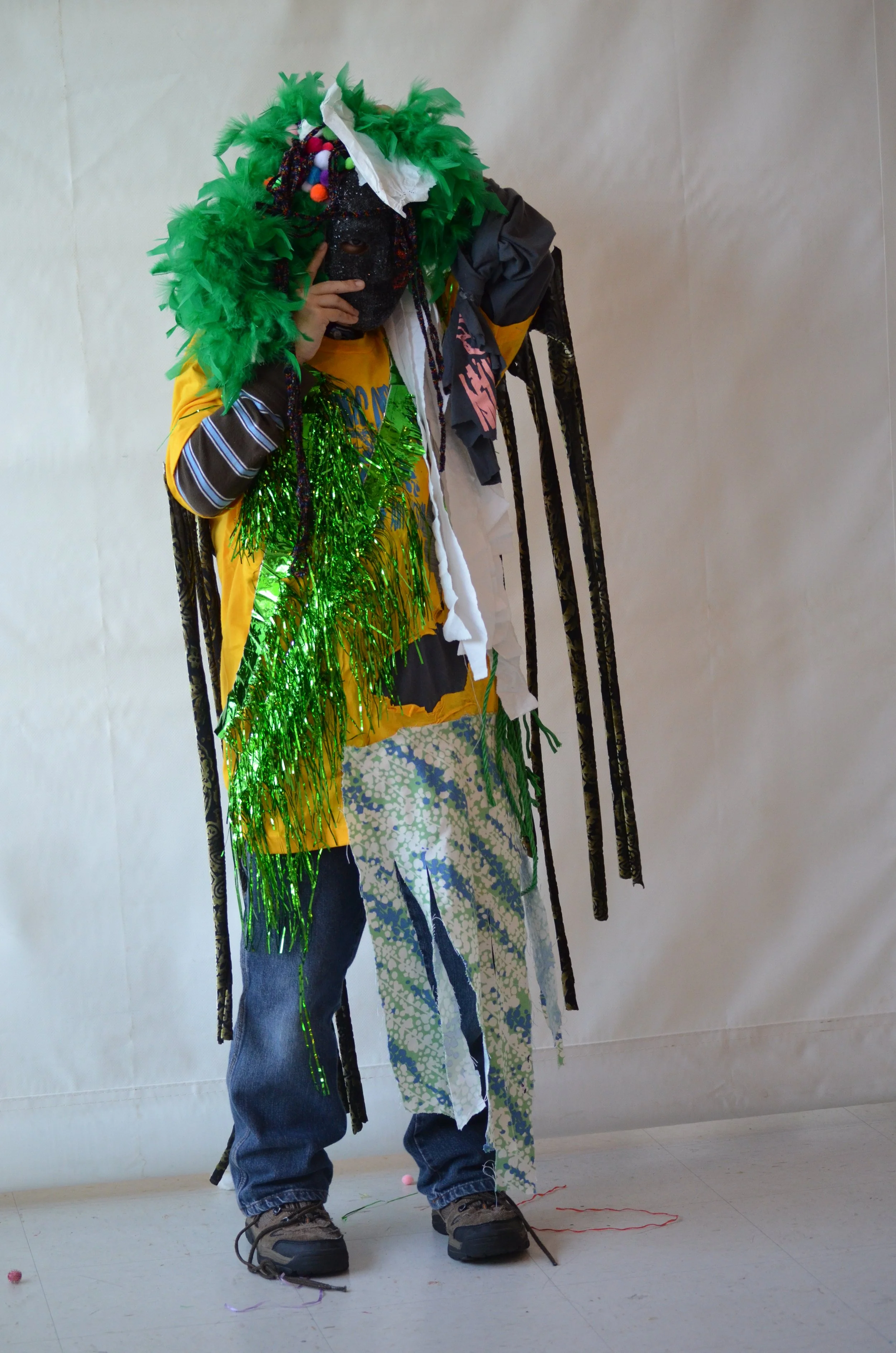 These suits are inspired by the work of Nick Cave that was exhibited in the 30 Americans exhibit at the Corcoran Museum in 2012. Students wore the suits in the programs 20th anniversary celebration and exhibit, Expressions 2012 : Art by DC Youth.